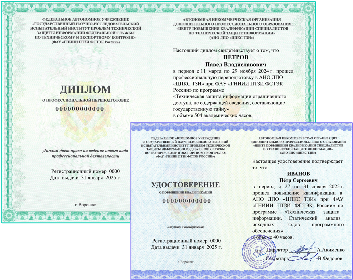 Слушателям, успешно освоившим программу обучения, выдается документ о квалификации (диплом о профессиональной переподготовке или удостоверение о повышении квалификации) установленного образца